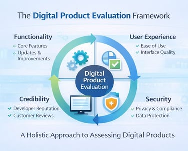 Evaluating a digital product requires examining four critical dimensions that directly impact its value and reliability. These criteria help you determine whether a product deserves your recommendation and will meet your audience's needs.