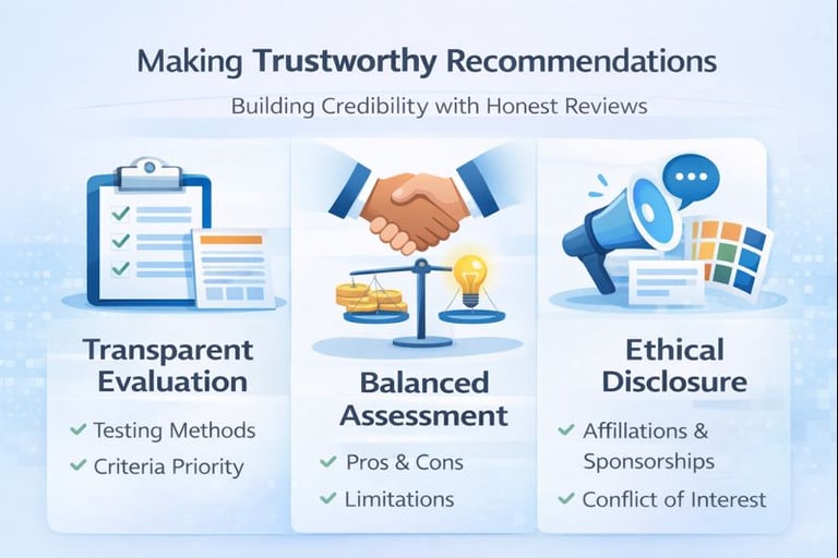 If you have financial incentive to recommend a product, acknowledge it directly. You can maintain credibility with affiliate relationships by being explicit about them and ensuring your evaluation remains rigorous despite the commercial arrangement.