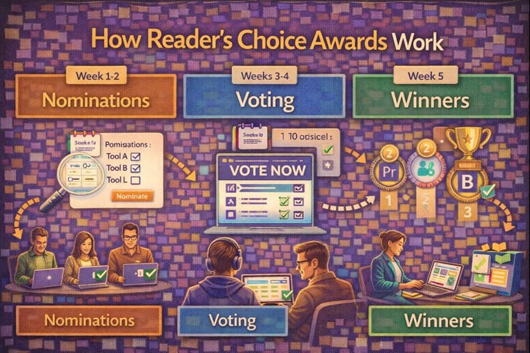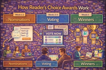 Reader's Choice Awards operate through a structured voting system where your audience nominates and selects their preferred tools within defined categories. The process establishes clear rules for which tools qualify and follows a specific timeline to maintain fairness and transparency.
